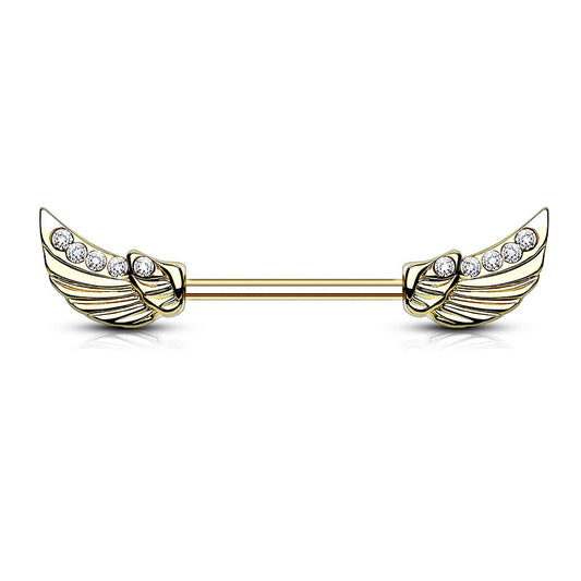 Brustwarzenpiercing 12mm 14mm lang Brustpiercing Intimpiercing Nippelpiercing Barbell Engelsflügel Silber gelbgold roségold Zirkonia viele Farben