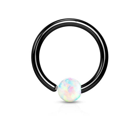 Paula & Fritz® Ring aus Edelstahl Chirurgenstahl 316L Gelbgold, Schwarz, Roségold, Regenbogen für Lippe, Nase, Augenbraue mit Opal Weiß