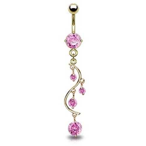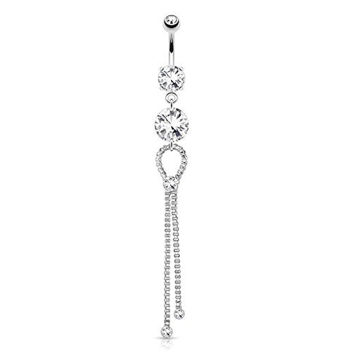 Bauchnabelpiercing aus Edelstahl Chirurgenstahl 316L mit Anhänger Großer Zirkonia farblos pink und hängende Ketten