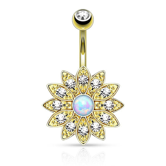 Bauchnabelpiercing aus Edelstahl Chirurgenstahl 316L vergoldet, rosévergoldet mit rundem Opal