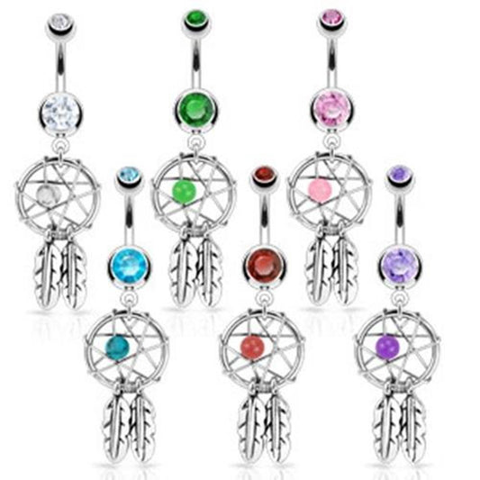 Bauchnabelpiercing Traumfänger Kugel Zirkonia Aqua Clear Grün Pink Rot Tanzanit Bananabell Bauchpiercing Edelstahl Chirurgenstahl 316L