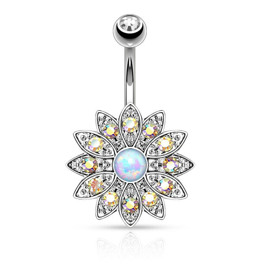 Bauchnabelpiercing aus Edelstahl Chirurgenstahl 316L silbern. vergoldet. rosévergoldet Blume besetzt mit Zirkonia farblos. Aurora
