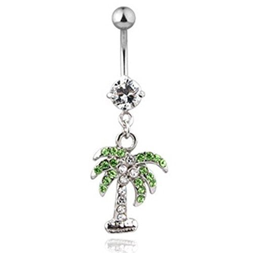 Bauchnabelpiercing aus Edelstahl Chirurgenstahl 316L mit Anhänger Palme aus Zirkonia farblos, pink, Aqua