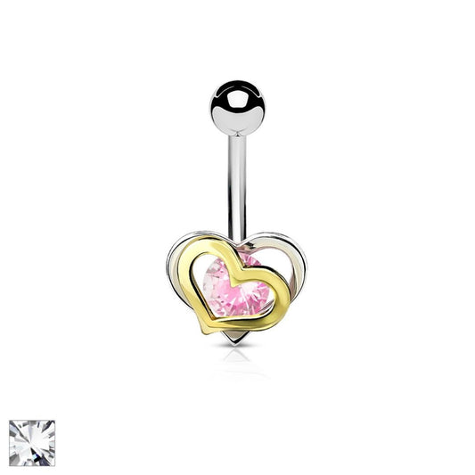 Bauchnabelpiercing ECHTGOLD 14 Karat Gelbgold Weißgold Bananabell Bauchpiercing Blume Herzen Zirkonia Clear