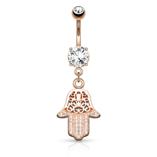 Bauchnabelpiercing Chirurgenstahl Gold Rosegold Set Banane Bauchpiercing Bananabell Bauchpiercing Anhänger Hamsa Hand 10mm Stablänge