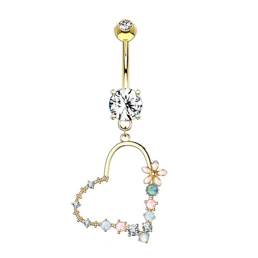 Bauchnabelpiercing Herz Blume Anhänger Synth Opal Zirkonia 316L Chirurgenstahl Bauchpiercing Bananabell Bauchpiercing Gold Silber