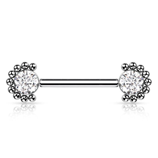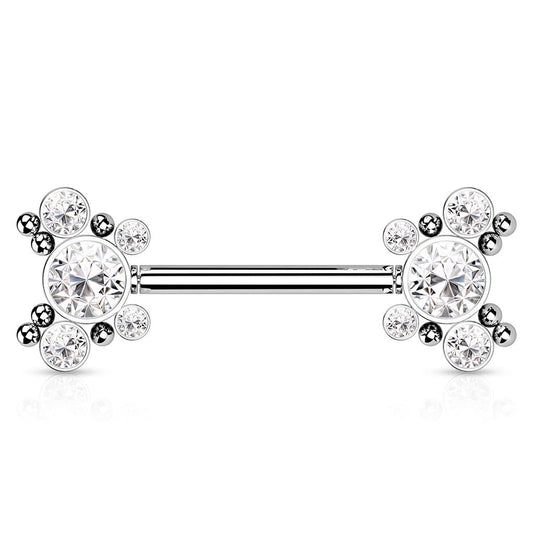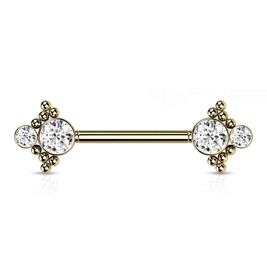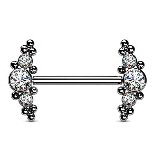 Push-In Piercing Brustwarze Mehrfarbig Zirkonia Chirurgenstahl 316L Kugel 14 Stablänge Nipple Gewindelos Straight Barbell Bridge