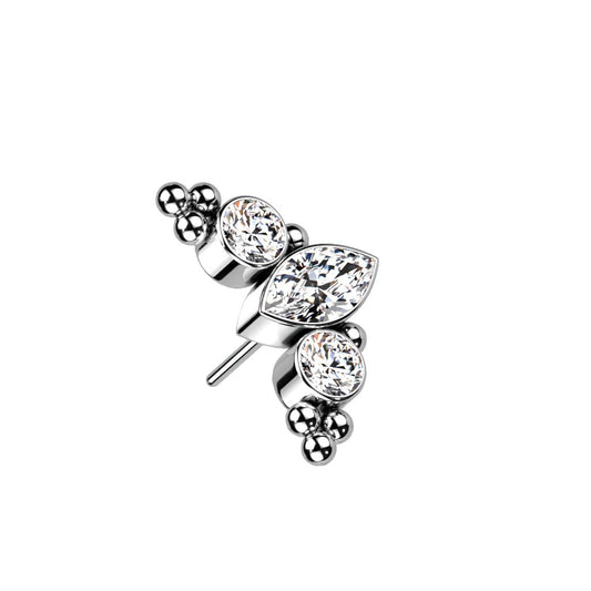 Push-In Aufsatz Blüte Zirkonia Titan Grade 23 Piercing Set Mehrfarbig 7,4mm Ohrstecker Labret Stud Nipple Straight Barbell