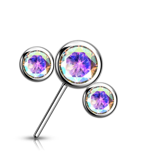 Push-In Aufsatz Silber Zirkonia Titan Grade 23 Piercing Set Mehrfarbig 12,6mm Lang Ohrstecker Labret Stud Nipple Straight Barbell