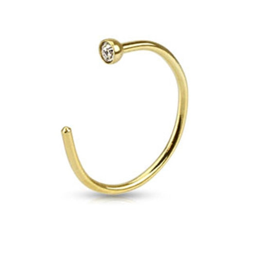 Nasenpiercing Spirale 14 Karat Echtgold Zirkonia Klar Nasen-Ring Nostril Spiral Nasenflügel Schmuck 0,8-mm 1-mm