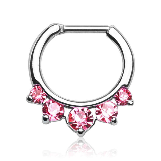 Septum Helix Tragus Cartilage Clicker Ring 5 große Zirkonia Silber Chirurgenstahl Stablänge 6mm Stabstärke 1.2mm und 1.6mm