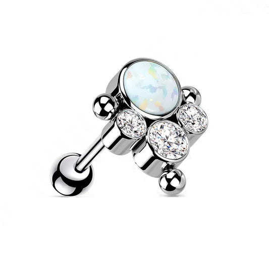 Push-In Ohrpiercing Tatze Silber Zirkonia Opal Titan Grade 23 Stablänge 1,2mm Stabdicke Gewindelos Kombinierbar Press-Fit
