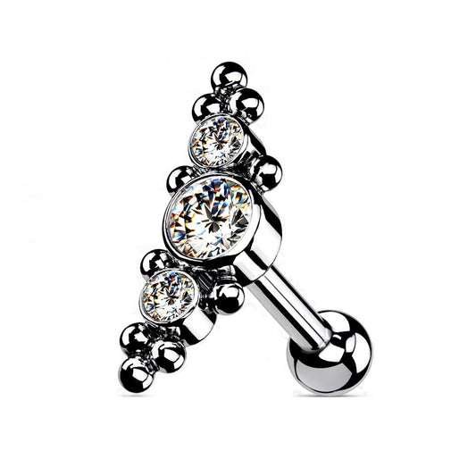Industrial Stab Piercing Straight Barbell Hantel DREI Zirkonia in Reihe Clear pink Aqua Ohr Knorpel Cartilage Edelstahl Chirurgenstahl 316L