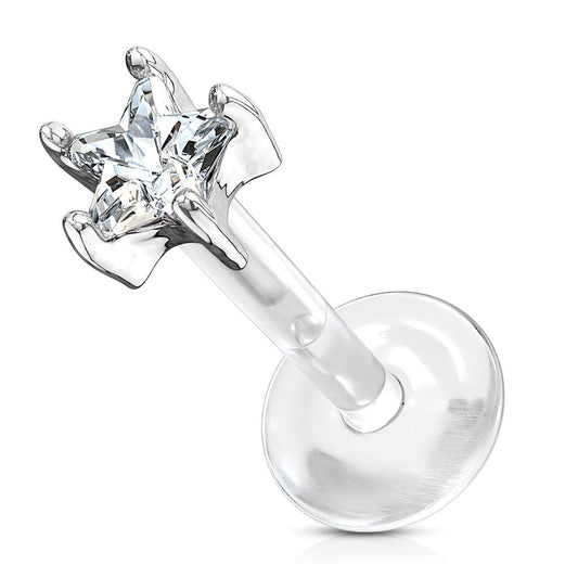 Lippenpiercing Stecker Bioflex 14 Karat Echtgold Weissgold Labret Piercing 8mm 1,2mm Ohr Damen Herren Tragus Conch Kristall Stab Stern