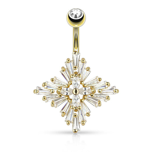 Bauchnabelpiercing aus Edelstahl Chirurgenstahl 316L 14 Karat vergoldet Silber gelbgold Anhänger Diamantenkreuz farblose Zirkonia
