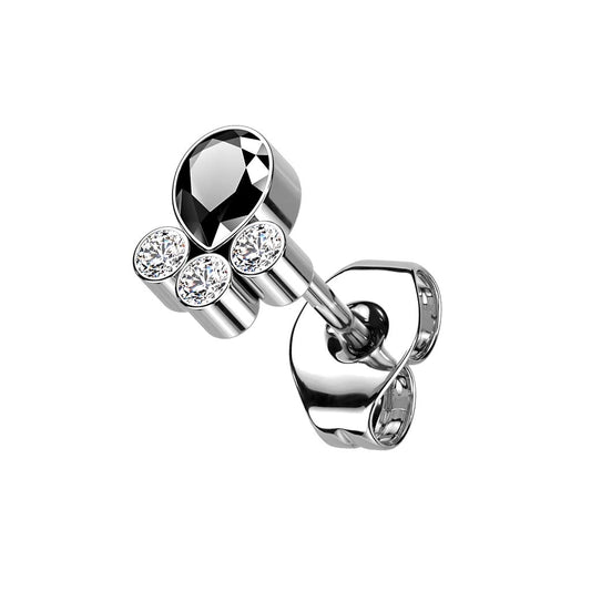 Push-In Ohrstecker Tatze Zirkonia Titan Grade 23 6,4mm Lang Butterflyverschluss Ohrring Gewindelos Kombinierbar Threadless Press-Fit