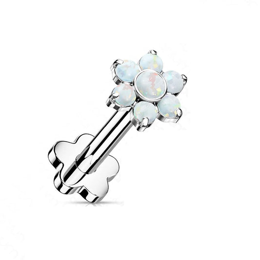 Push-In Labret Piercing Opal Titan Grade 23 Kugel Piercing Set Mehrfarbig 1,2mm Stabdicke Blütensockel Madonna Medusa Monroe