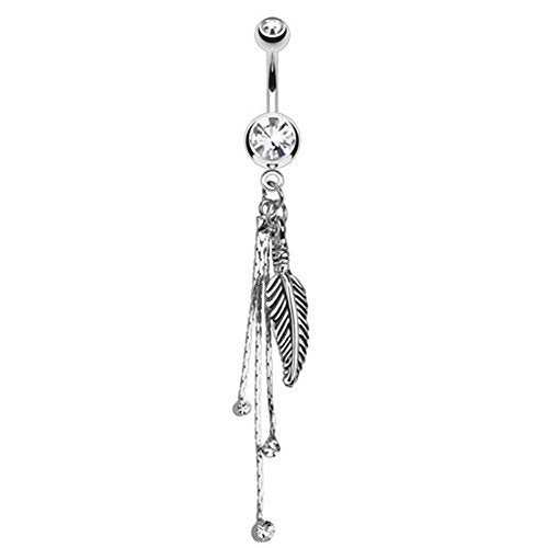 Bauchnabelpiercing aus Edelstahl Chirurgenstahl 316L mit Anhänger Federn und Ketten mit Zirkonia Aqua farblos pink