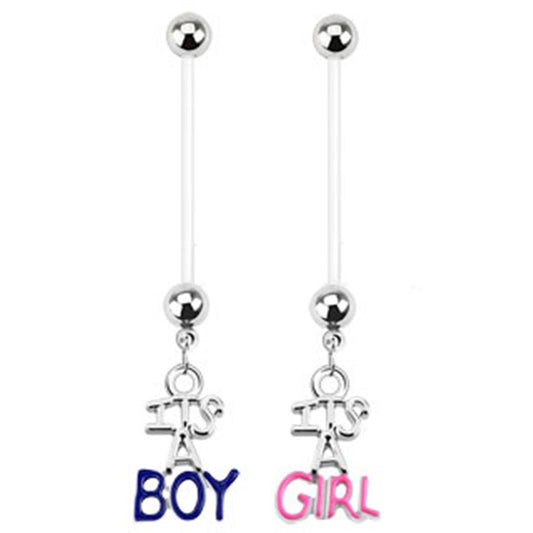 Bioflex Bauchnabelpiercing für Schwangere aus Edelstahl Chirurgenstahl 316L mit Anhänger Babygeschlecht Blau, Pink