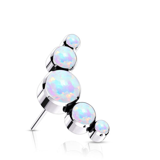 Push-In Aufsatz Silber Synthetischer Opal Titan Grade 23 Piercing Set 12,2mm Groß Ohrstecker Labret Stud Nipple Straight Barbell