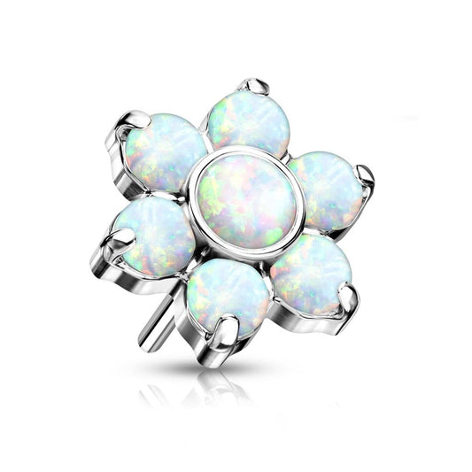 Push-In Aufsatz Blume Synthetischer Opal Titan Grade 23 Piercing Set 5mm Groß Ohrstecker Labret Stud Nipple Straight Barbell
