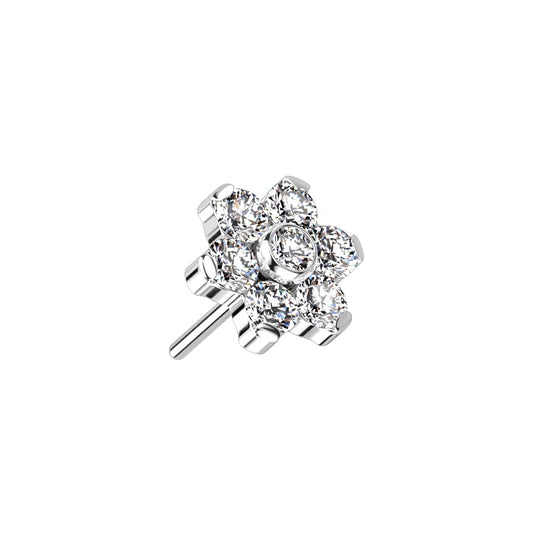 Push-In Aufsatz Blume Zirkonia Titan Grade 23 Piercing Set Mehrfarbig 5mm Groß Ohrstecker Labret Stud Nipple Straight Barbell