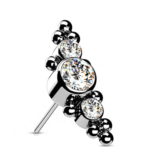 Push-In Aufsatz Dreieck Zirkonia Titan Grade 23 Piercing Set Mehrfarbig 5mm Groß Ohrstecker Labret Stud Nipple Straight Barbell