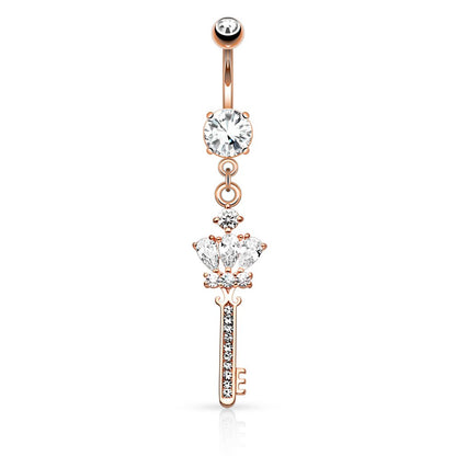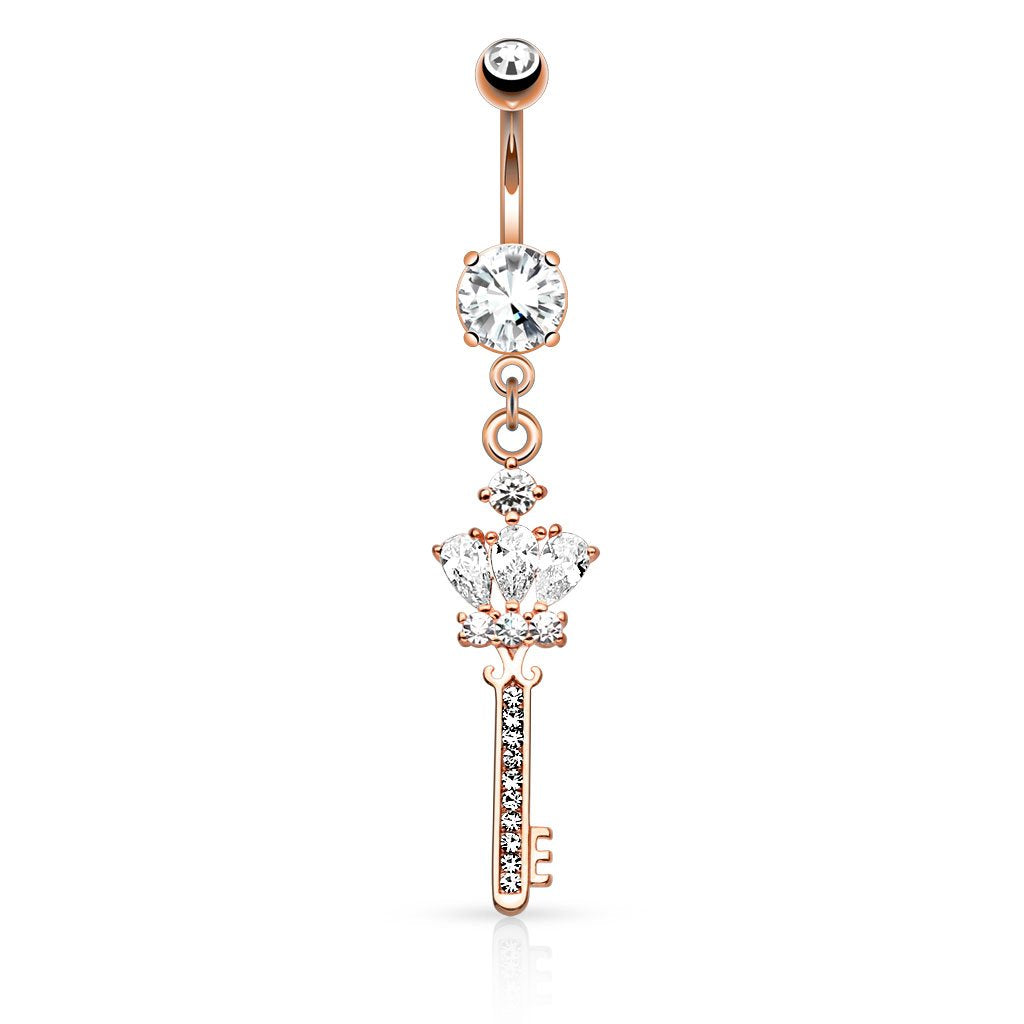 - CROWN CZ Key with Paved Gem Shaft Dangle Navel Ring