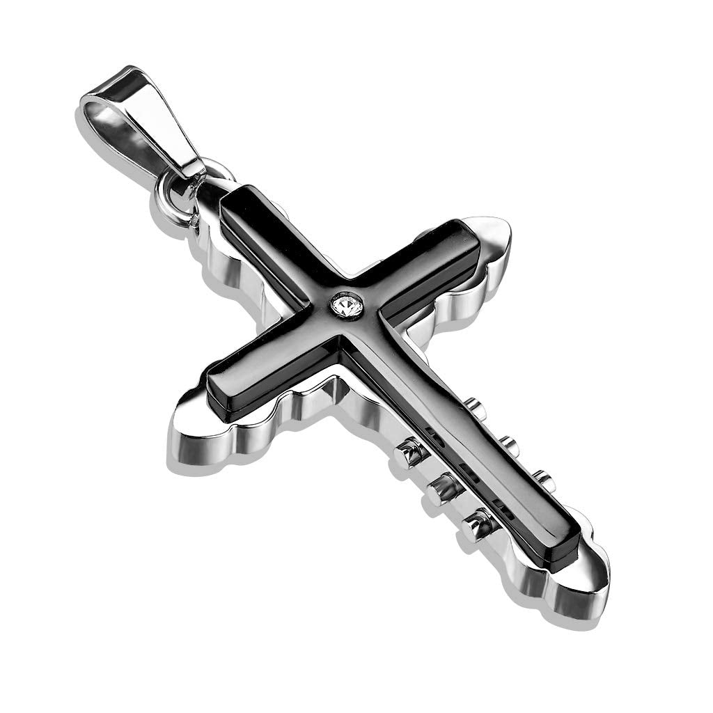 Kettenanhänger Doppeltes Kreuz Zirkonia 316L Chirurgenstahl SilberSchwarz HalsKettenanhänger Pendant HerrenKettenanhänger