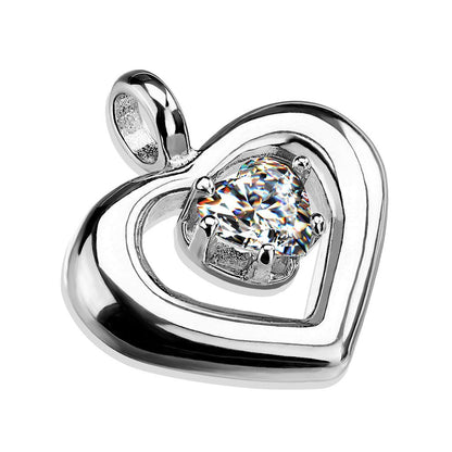 Kettenanhänger Herz Zirkonia Klar 316L Chirurgenstahl Silber HalsKettenanhänger Pendant Damenkettenanhänger HerrenKettenanhänger