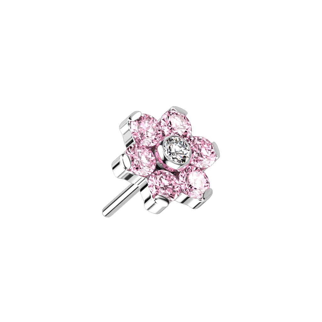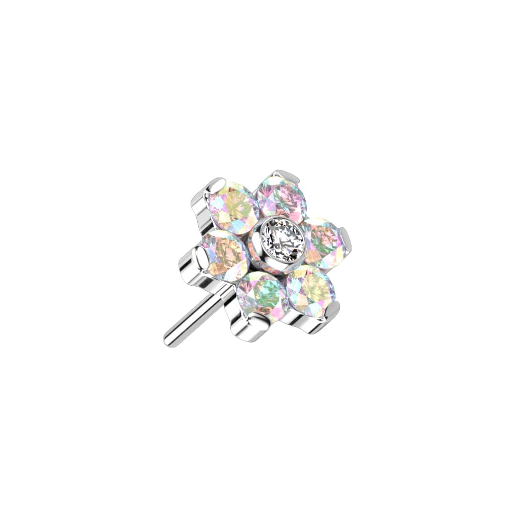 Push-In Aufsatz Blume Zirkonia Titan Grade 23 Piercing Set Mehrfarbig 5mm Groß Ohrstecker Labret Stud Nipple Straight Barbell