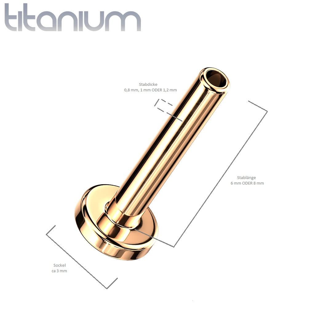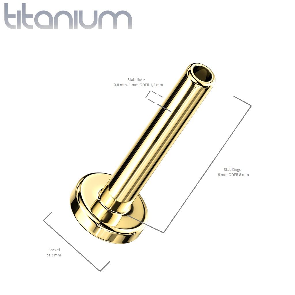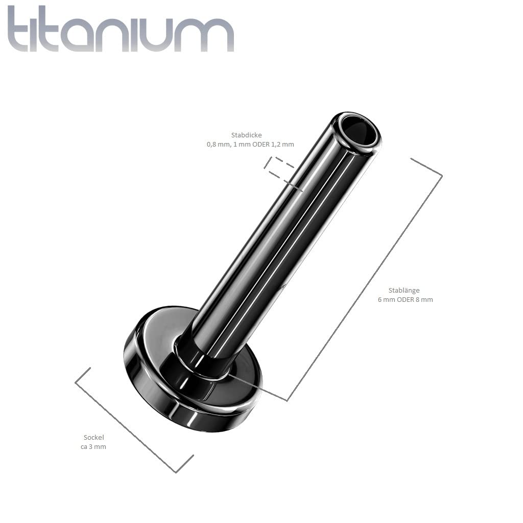 - ABMESSUNGEN - Der Conch Piercing Threadless-Schmuck besteht aus dem 0,8-mm, 1-mm oder 1,2-mm dicken und 6-mm oder 8-mm langem Stab. Erhältlich ist dieser Ersatz-Stab in den Farben Gold, Schwarz und Rosegold. Der Sockel ist bei allen ca 3,5-mm.