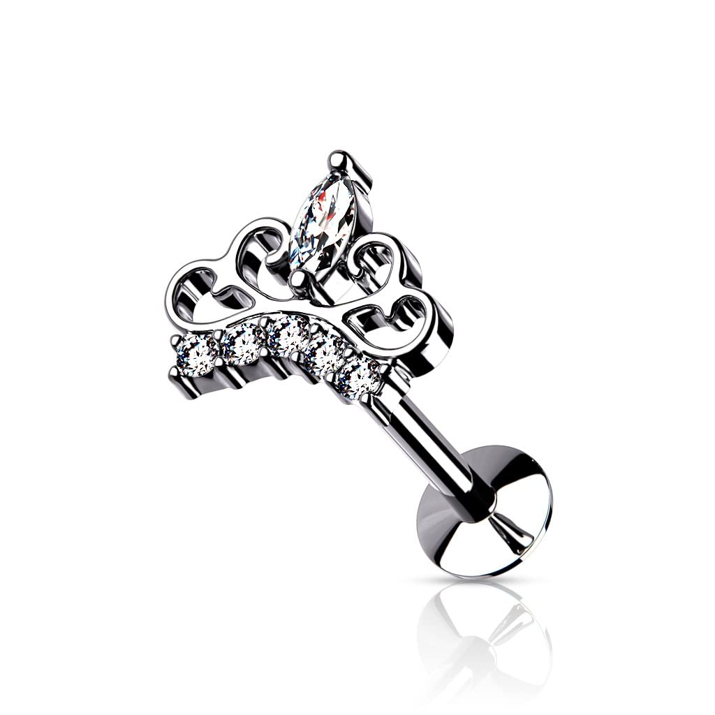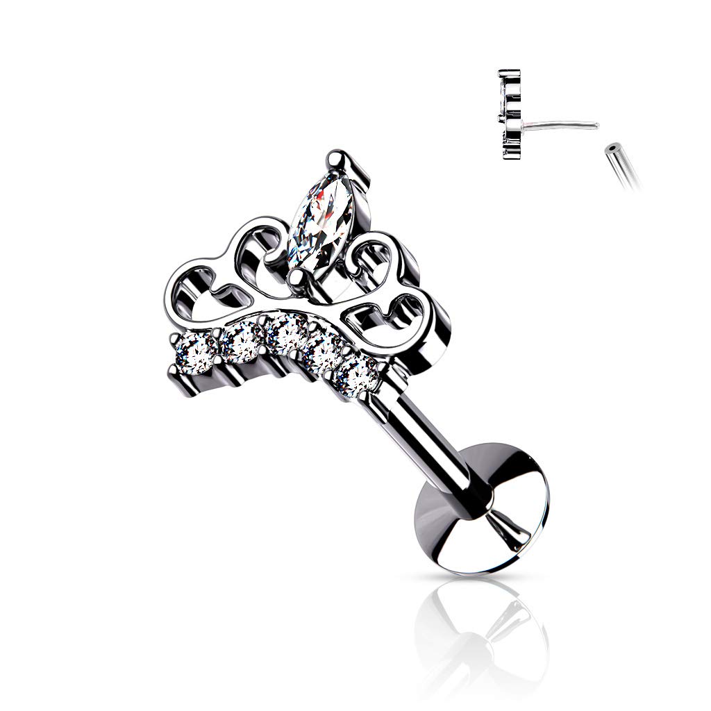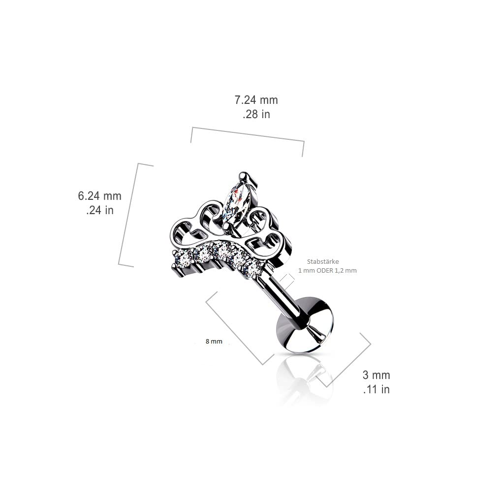 Push-In Labret Piercing Krone Zirkonia Klar Chirurgenstahl 316L Set Mehrfarbig 1mm 1,2mm Stabstärke Madonna Medusa Ohr-Stecker Labret Stud