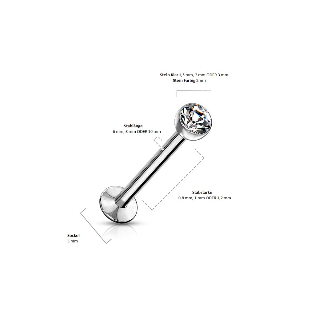 Push-In Labret Piercing Kugel Zirkonia Chirurgenstahl 316L Ball Set 0,8mm 1mm 1,2mm Stabdicke Madonna Medusa Monroe Helix Tragus