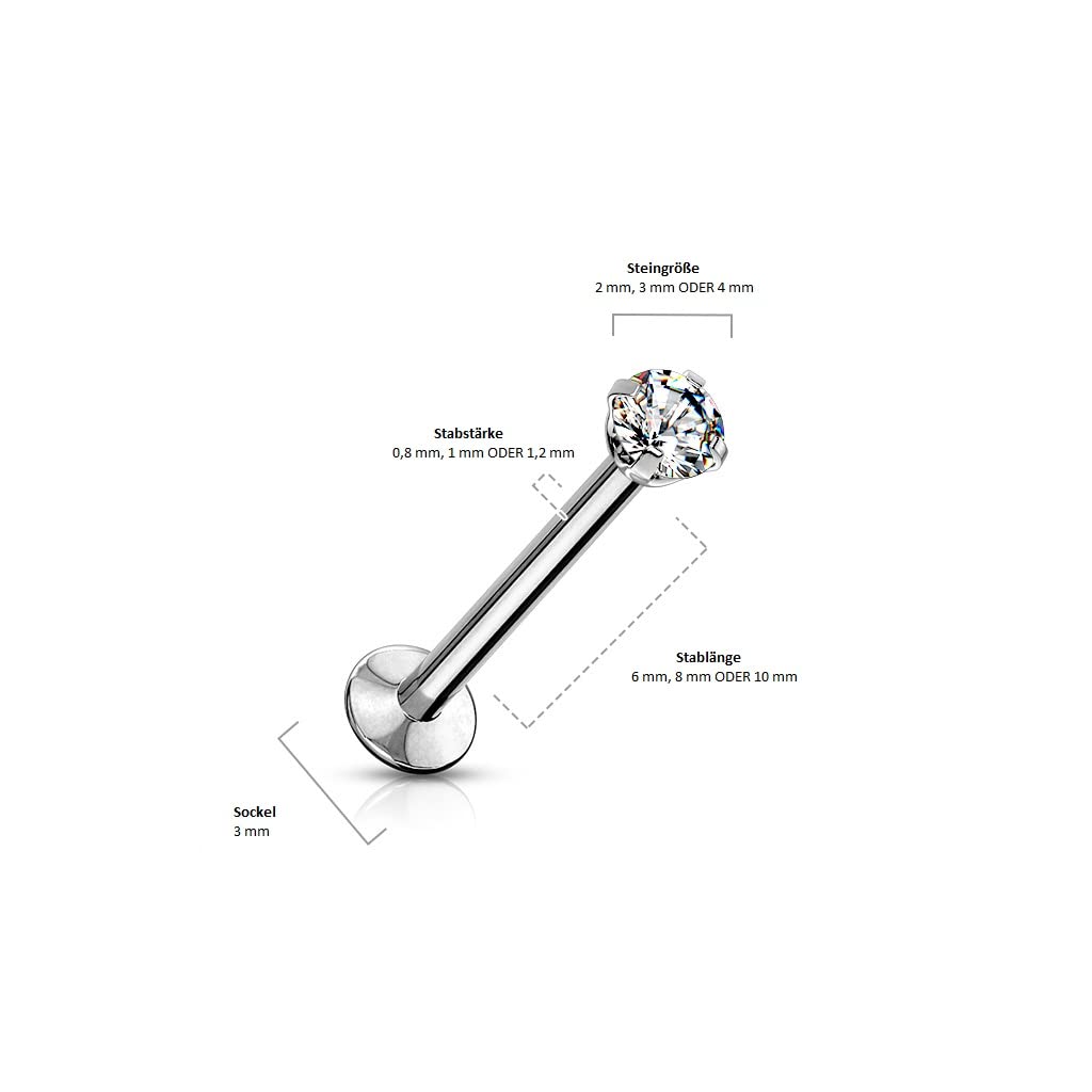 Push-In Labret Piercing Kugel Zirkonia Chirurgenstahl 316L Ball Set 0,8mm 1mm 1,2mm Stabdicke Madonna Medusa Monroe Helix Tragus
