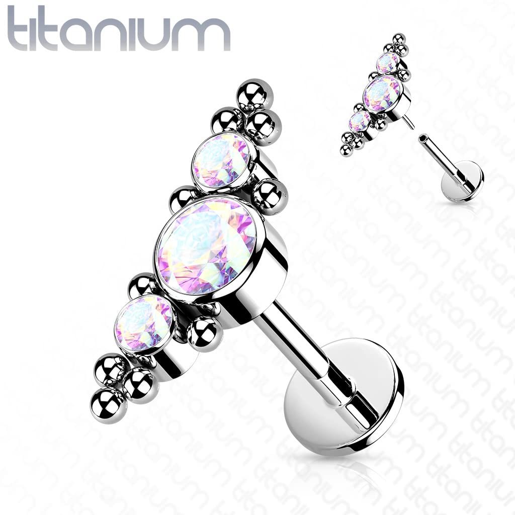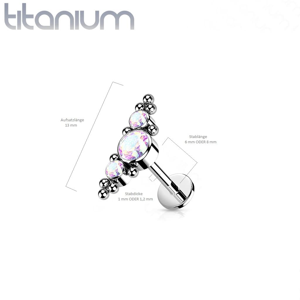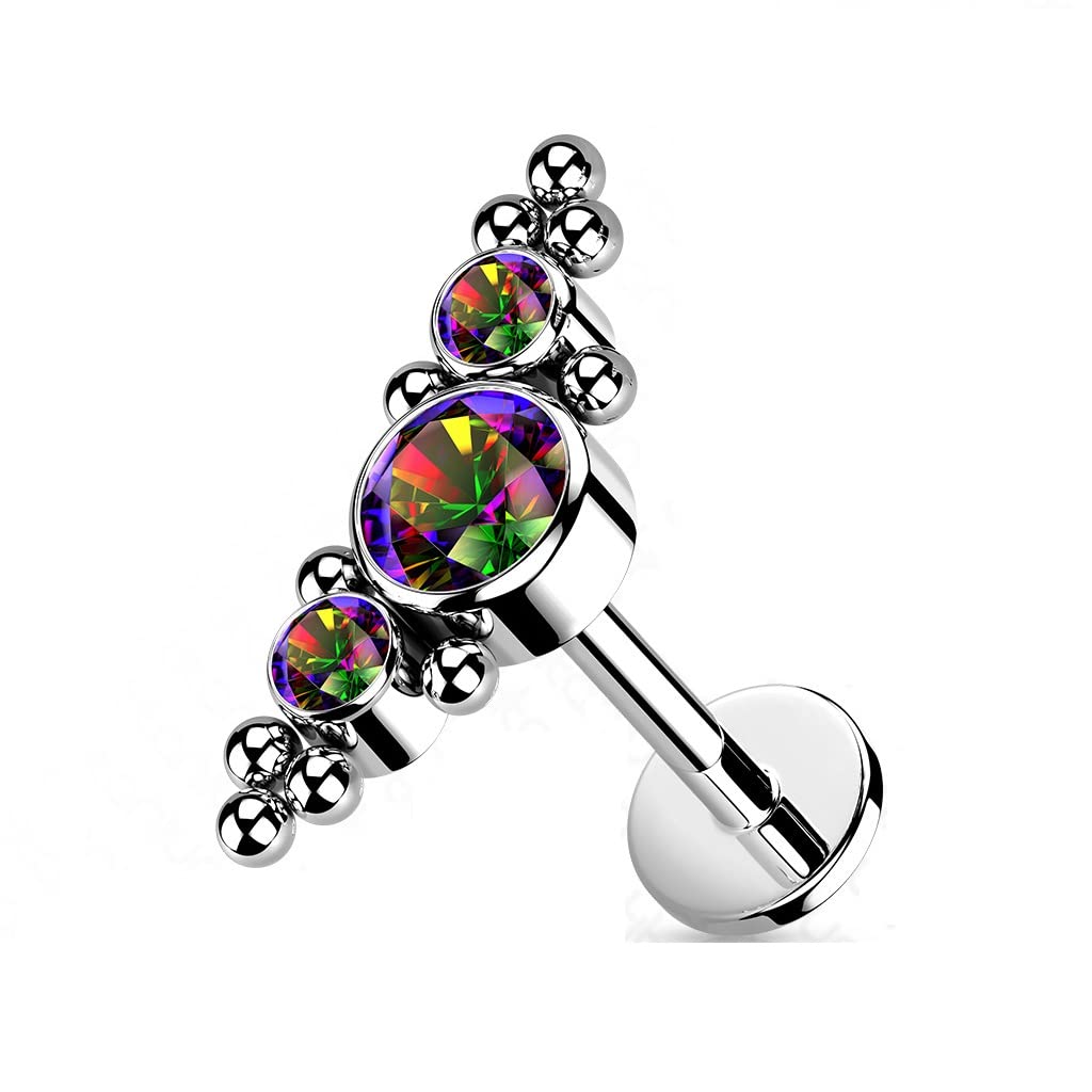 Push-In Labret Piercing Zirkonia TitanIUM Grade 23 Kugel Piercing Mehrfarbig 1mm 1,2mm StabDicke Madonna Medusa Monroe Knorpel