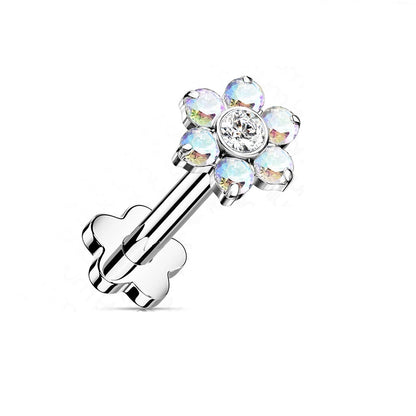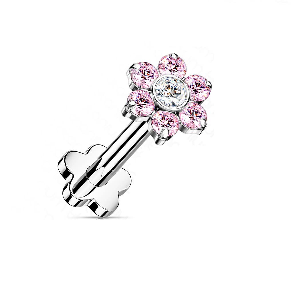 Push-In Labret Piercing Zirkonia Titan Grade 23 Kugel Piercing Set Mehrfarbig 1,2mm Stabdicke Blütensockel Madonna Medusa Monroe