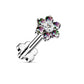 Erhältlich ist dieser Push-In Dahlia Piercing in der Farbe Silber. Die Farben der Zirkonia sind wählbar aus Regenbogen, Pink, Klar, Regenbogen dunkel und Türkis . Der mittlere Stein ist bei allen Varianten Klar. Die Stabstärke beträgt bei allen 1,2 mm, Stablänge 8 mm, einen 4 mm Blüttensockel und eine ca 5 mm große Blume.