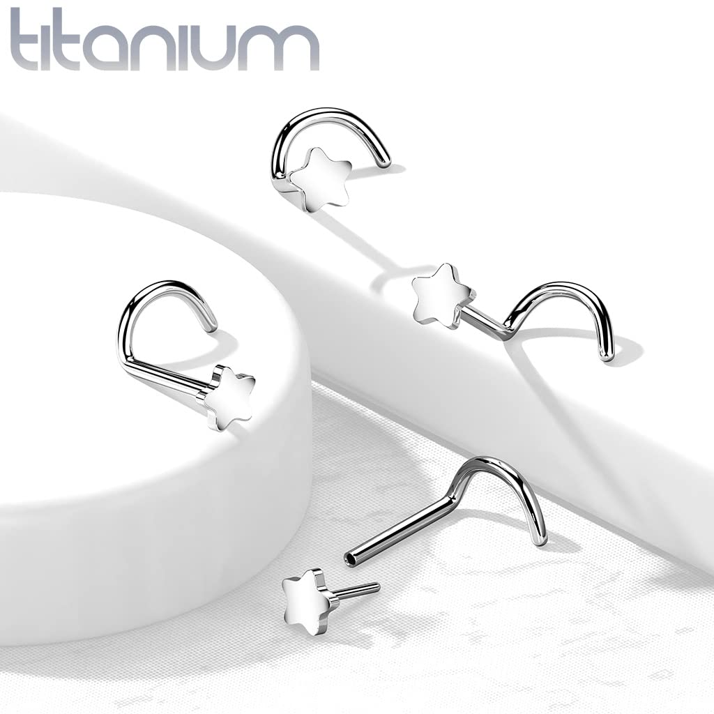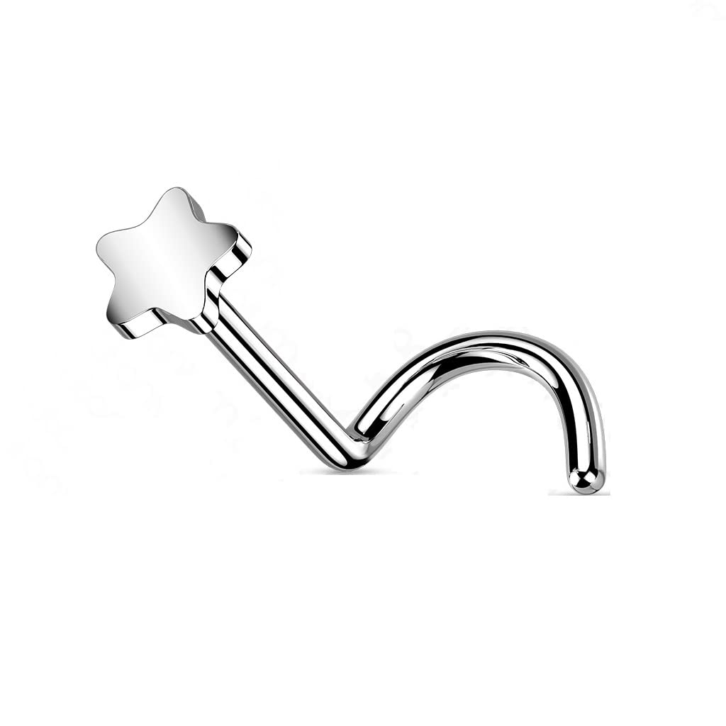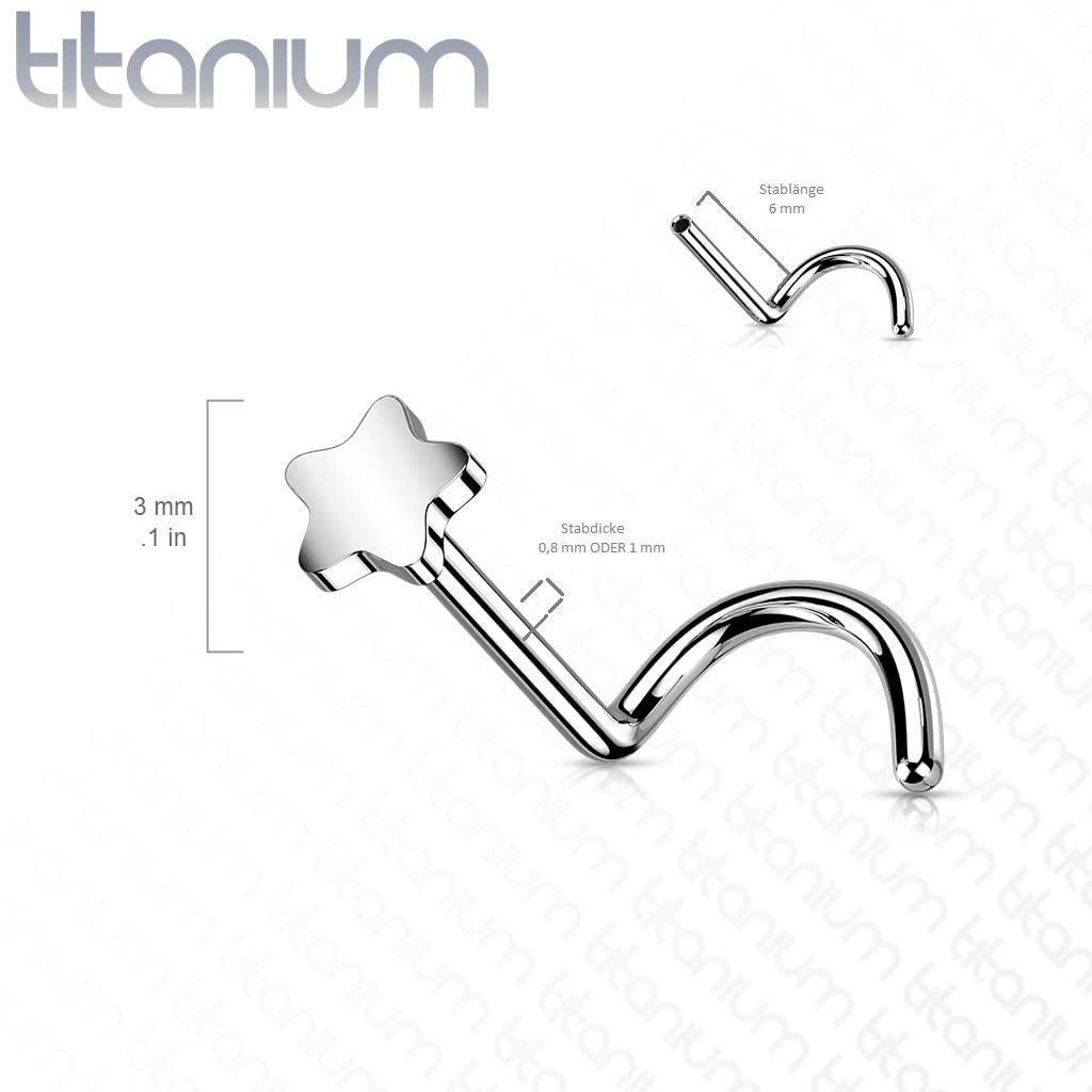 Push-In Nasenpiercing Spirale Stern Silber Titan Grade 23 Kugel Nase Nostril Nasenflügel 0,8mm 1mm