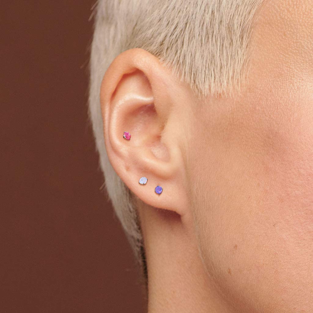 Erhältlich ist dieser Push-In Ohr-Stecker in der Farbe Silber mit einem 4 mm großen Synthetischem Opal. Diesen gibt es in den Farben Blau, Weiß, Pink und Lila. Wählen Sie die Stablänge zwischen 6 mm und 8 mm aus. Egal ob Medusa, Tragus, Helix, Madonna, Inner und Outter Conch oder Labret Piercing dieser Aufsatz sieht überall super aus.