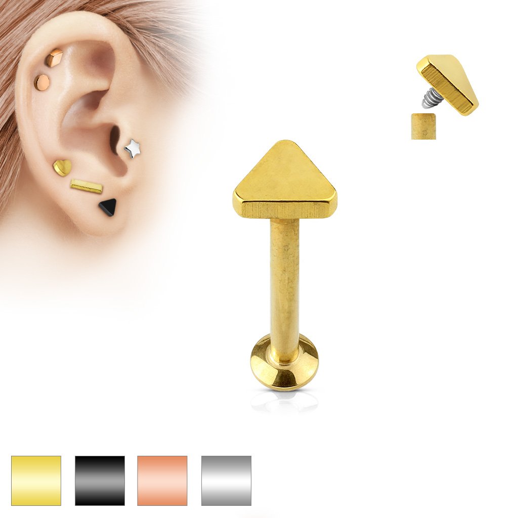 - Triangle Top Internally Threaded 316L Surgical Steel Labret, Monroe, Cartilage Studs